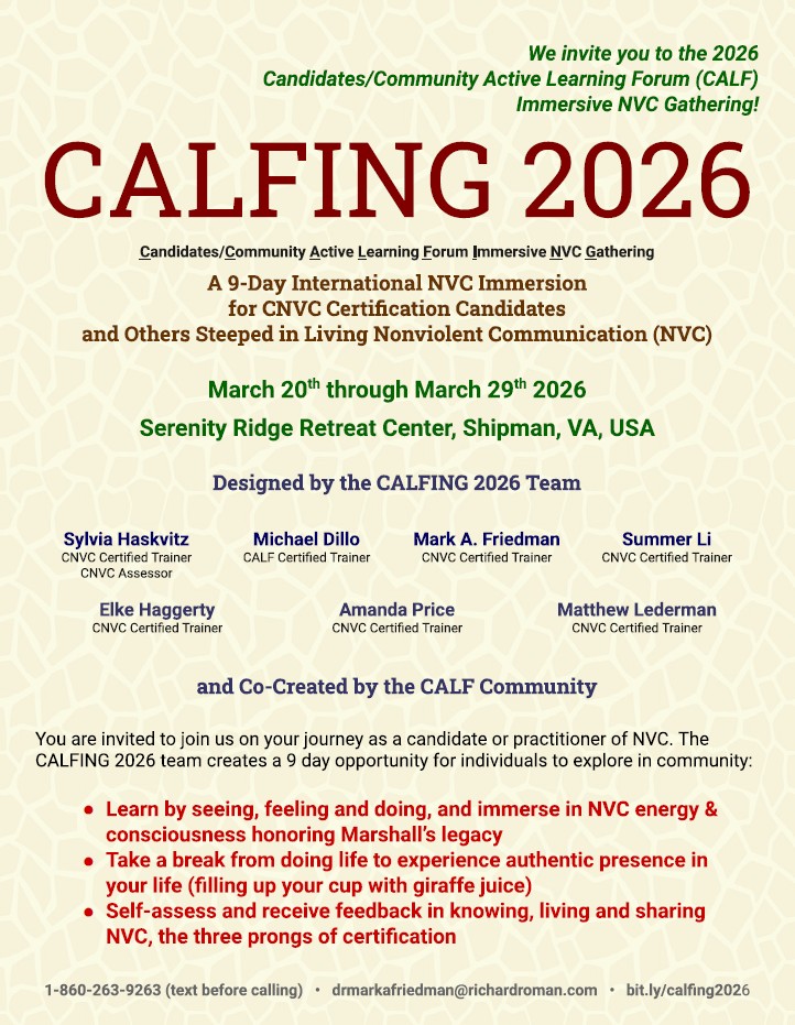 CALF RETREAT FOR PEOPLE STEEPED IN NVC